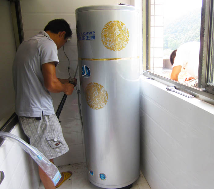 聚阳新能源热水器的加热原理是利用吸收空气中的大量的热量,并经过压缩机的压缩后,通过绝对绝缘的环保冷媒把热量转移到水中,从而使水变热,详情请咨询400-6900-226